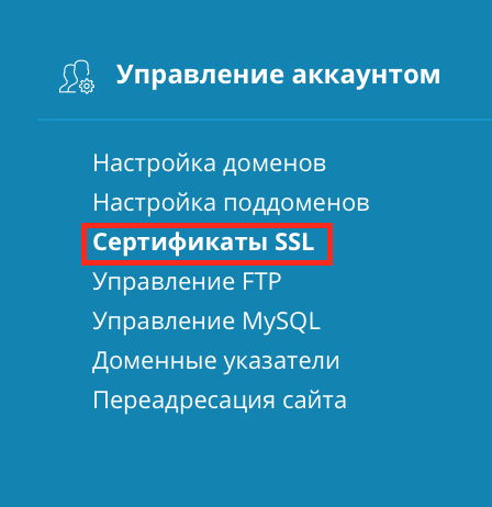 перейдите в панель управления хостингом (Direct Admin) → "Управление аккаунтом" → Сертификаты SSL