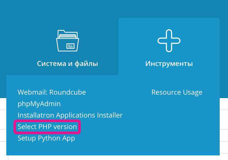 В панели управления хостингом вам нужен раздел "Инструменты" → "Выбор версии PHP"