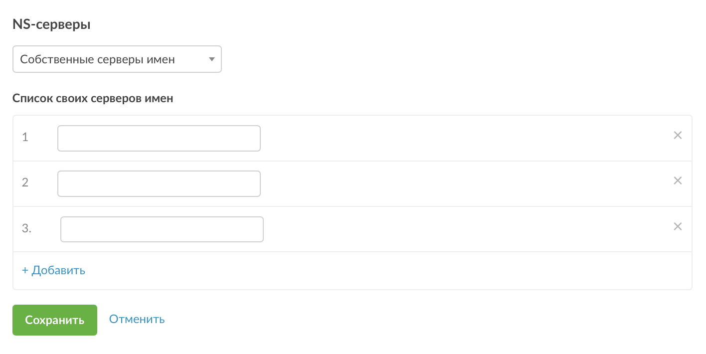 В настройках домена в поле "NS-серверы" вы выбираете "Собственные серверы имен".
