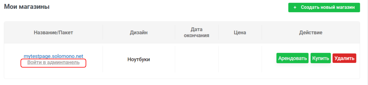 Войдите в административную панель вашего магазина на платформе Solomono