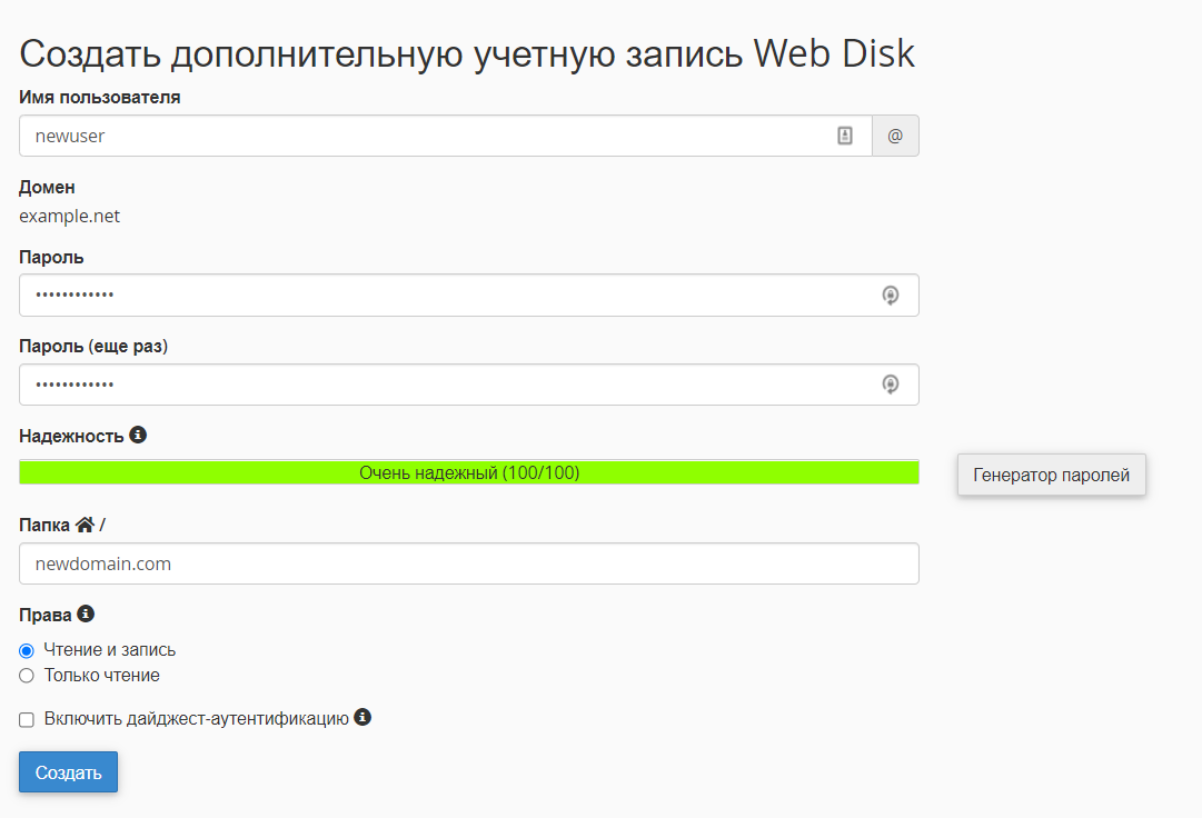 Также можно вручную создать пользователя, у которого будет доступ только к одному конкретному каталогу, в разделе "Создать дополнительную учетную запись Web Disk".
