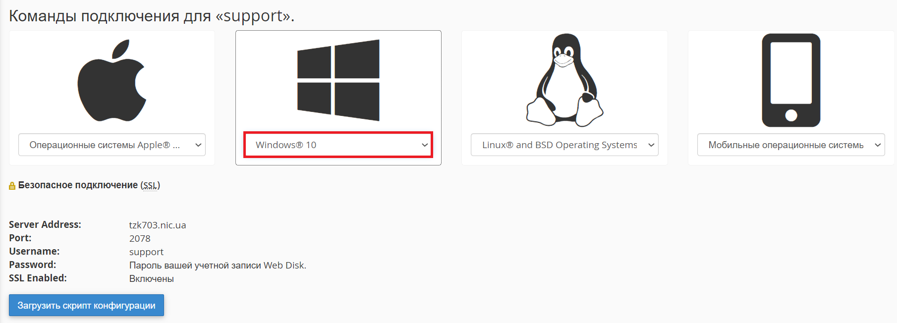 В этом разделе выберите операционную систему, после чего вам будут предоставлены параметры для подключения к веб-диску.