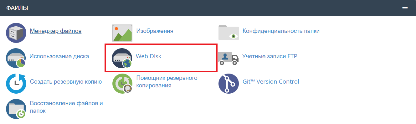 Веб-диск — это инструмент, работа которого похожа на «Облачное хранилище». С помощью такого инструмента можно управлять файлами на сервере как будто они находятся на одном из локальных дисков вашего компьютера.