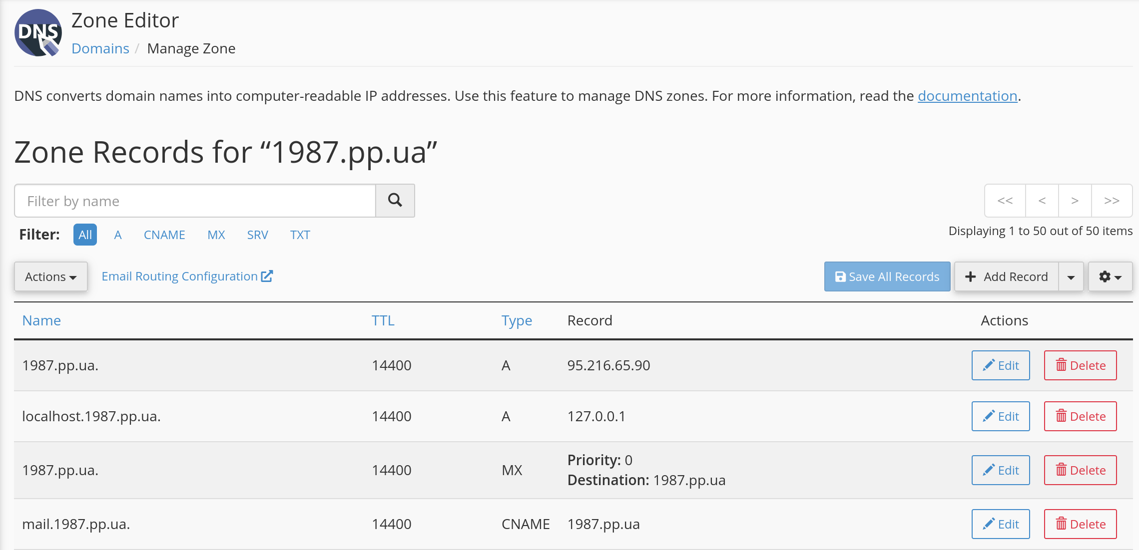 Почему настройки с DNS записями в Zone Editor в cPanel не работают