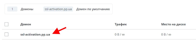 Далее выберите домен, для которого нужно установить SSL-сертификат.