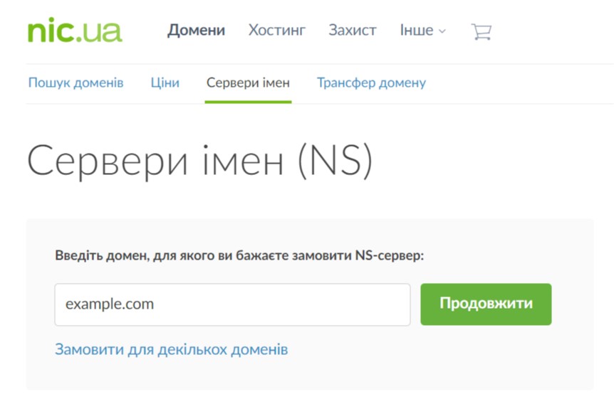 - Сформуйте замовлення на сервери імен (NS-сервери) для вашого домену на сторінці «Сервери імен»