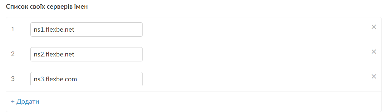 Тепер вам доступно редагування списку NS-серверів. Замість поточних вам потрібно вставити сервери імен торгового майданчика: