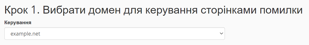 Спочатку оберіть для якого домену бажаєте відредагувати шаблон сторінок про помилки.