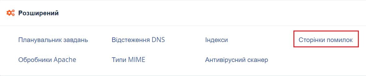 Сторінки помилок в cPanel
