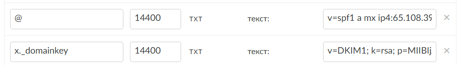 Додайте два нових записи з типом TXT: