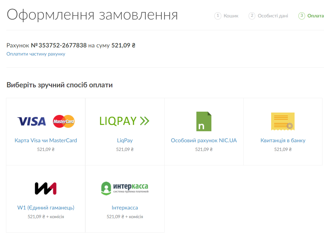 Після натискання на кнопку "Продовжити оформлення рахунку" буде сформовано рахунок і зможете обрати зручний для себе спосіб оплати.