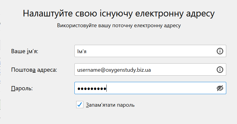 Щоб додати обліковий запис електронної пошти у програмі Thunderbird, виконайте кроки згідно до цієї інструкції.