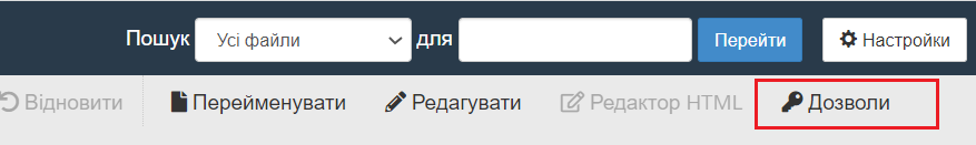 У менеджері файлів знайдіть необхідні файли або папки та виділіть їх. Потім у верхньому меню натисніть кнопку "Дозволи".