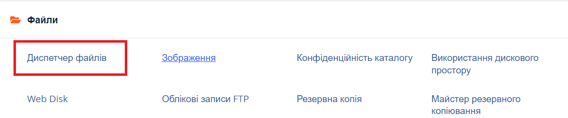 У cPanel знайдіть розділ "Файли" та виберіть підрозділ "Диспетчер файлів".