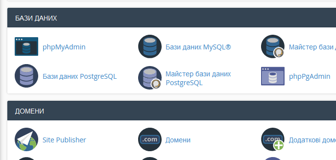 Також розробники можуть входити до phpMyAdmin за посиланням — https://tzk702.nic.ua:2083/3rdparty/phpMyAdmin/index.php — де замість 'tzk702.nic.ua' вкажіть сервер вашого хостингу.