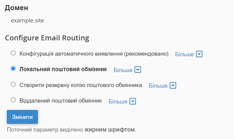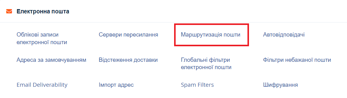 У cPanel є важливий розділ "Маршрутизація пошти", який відповідає за коректність пересилання листів між користувачами. Доступ до нього знаходиться у розділі "Пошта" панелі хостингу cPanel.