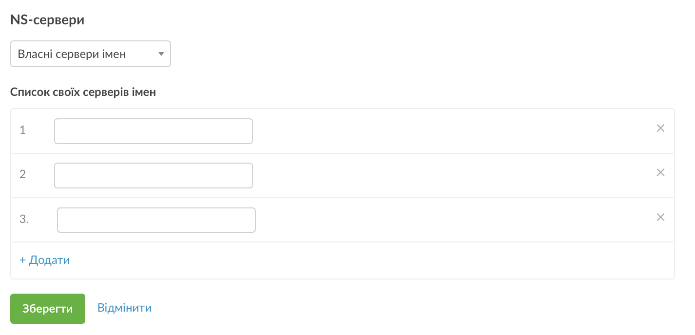 В налаштуваннях домену в поле "NS-сервери" ви вибираєте "Власні сервери імен".